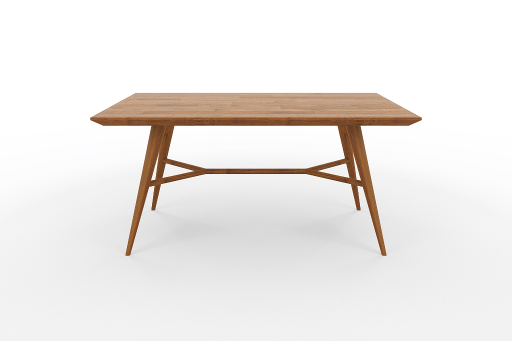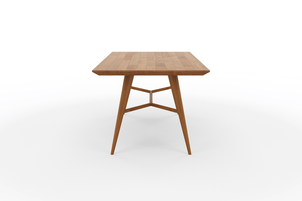 Aurum is a refined mid-century modern dining table featuring elegant tapered legs and a sleek wooden surface, crafted to balance aesthetics, functionality, and timeless craftsmanship in any modern interior.