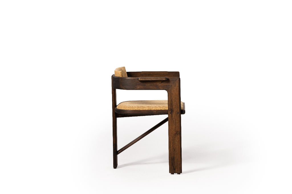 The Piatto Dining Chair brings together form and comfort in perfect conversation. With a cushioned back and sculpted teak frame, it redefines elegance through tactile softness and structural clarity. Designed with armrests for a relaxed, upright posture, it merges function with finesse, ideal for long meals, reflective work sessions, or quiet moments of pause.