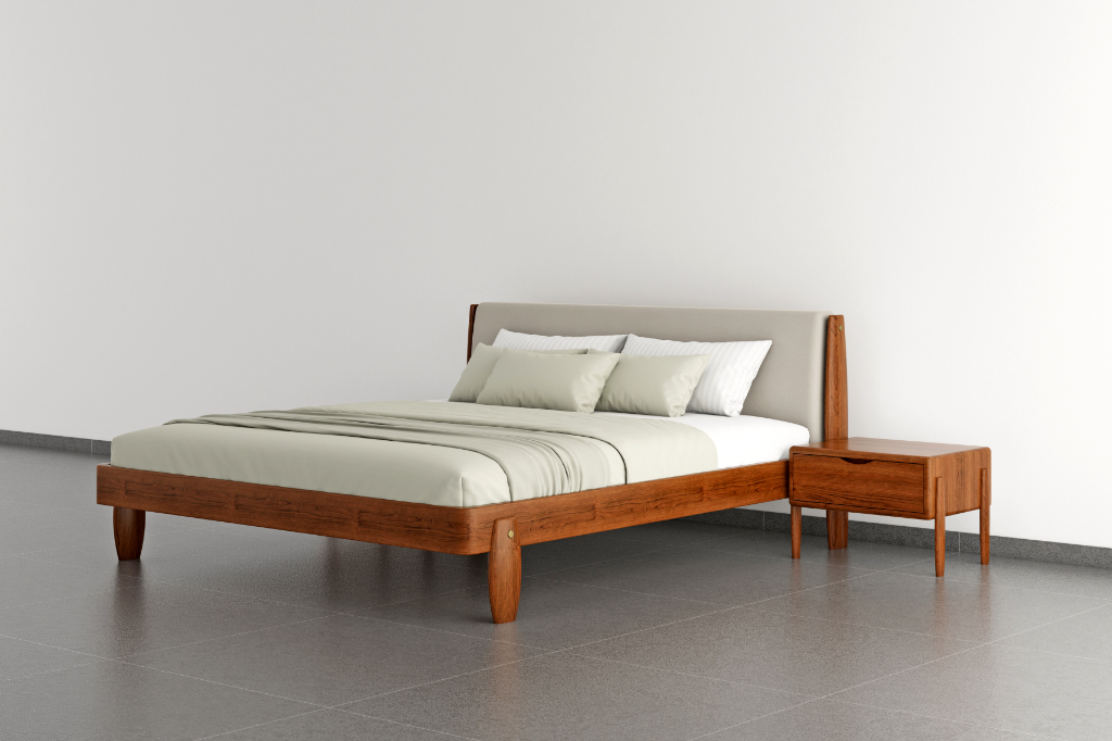 The Wabi Bed embodies the beauty of simplicity and craftsmanship. Inspired by the essence of Japanese minimalism, it features smooth curves, soft upholstery, and a finely detailed teak wood frame that radiates warmth and calm. Every joint and contour reflects a balance between form and function, understated yet refined. The Wabi Bed is designed to bring serenity and natural harmony into your space, celebrating the quiet luxury of honest materials and mindful design.